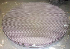 Wire gauze structured packing is made of various metal wires and then woven into wire gauze. This is the most widely used type of structured packing especially for processing specialty chemicals, pharmaceuticals and temperature-sensitive materials because it has advantages of high effectiveness, low pressure drop and large flow rate. It is also suitable for precise distillation and vacuum distillation devices. However, wire gauze structured packing is not suitable for fouling services and strongly corrosive media.